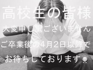 今年の3月に卒業予定の方は、ご登録(ご体験も含め)が出来る4月2日の前に気になることなどございましたら、いつでもご質問ください^^