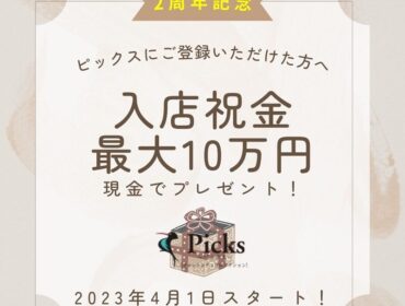 入店祝金のお知らせ♪ピックス松山のなおぽんです!(^^)! 期間限定で人気企画の入店祝い金を復活!! …
