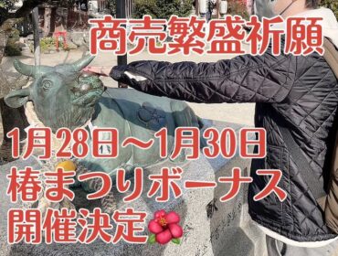 椿まつり今年は1月28日~1月30日開催✿こんにちわ!スタッフの久門です^^ 昨日で無事ランキングボーナスが終わりました☆ …